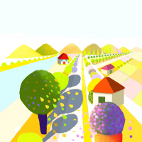 Questa opera di wall art minimalista nasce da una ricerca stilistica che fonde la dolcezza del Naïf moderno con una precisione quasi architettonica. La prospettiva centrale è studiata per catturare lo sguardo e guidarlo verso l'orizzonte, regalando una sensazione di profondità e ampiezza ai tuoi spazi.